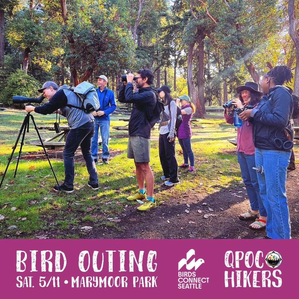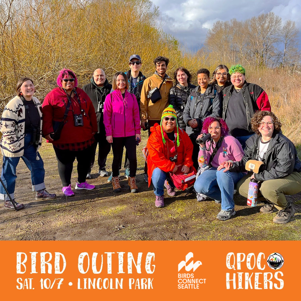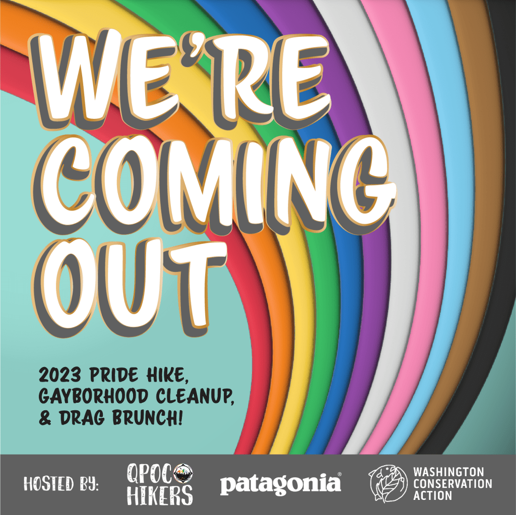 This “We’re Coming Out” collaboration is hosted by QPOC Hikers, Patagonia Seattle, and Washington Conservation Action in partnership with Birds Connect Seattle, Conservation Northwest, Orca Action Month, and SR3.