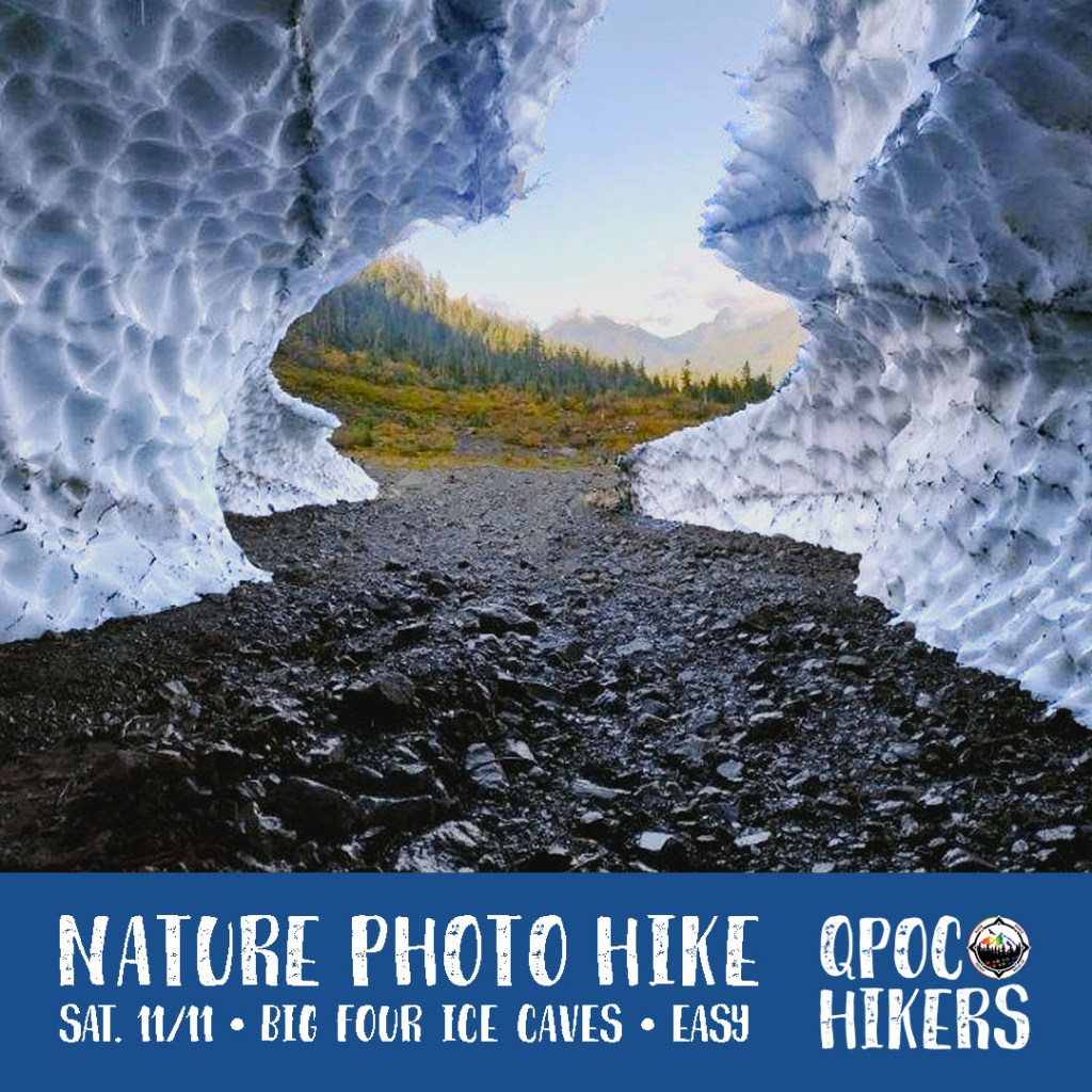 Join us for our last hike of the year to the Big Four Ice Caves! This is easy hike will take us through the forest to the side of Big Four Mountain where the Big Four Ice Caves are. Along the way we’ll learn some tips and tricks to capturing nature through your creative eye. Bring whatever camera you have. Phones are great too!